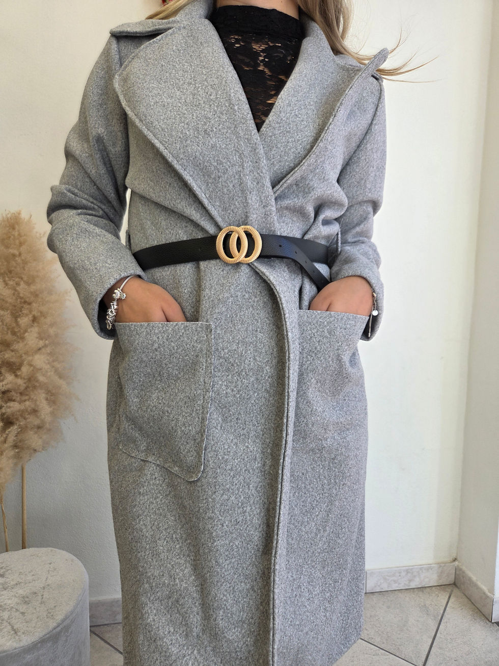 Cappotto con tasche a vista frontali. Passanti e cintura inclusa. Taglia unica. Vestibilità da XS a XL
