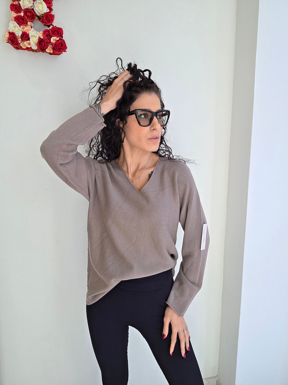Maglioncino con scollo a V. Manica lunga. Tessuto caldo perfetto per autunno inverno. Elasticizzato. Taglia unica. Vestibilità da XS a XL